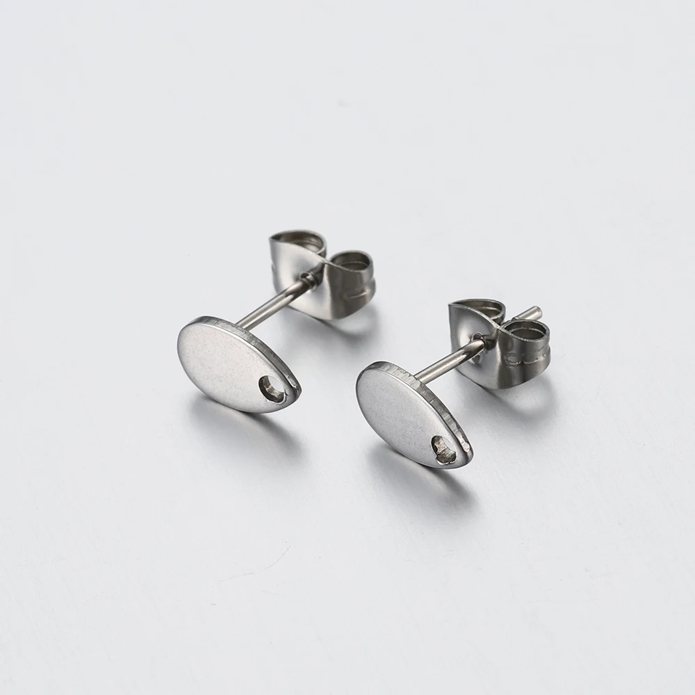 10pcs Stainless Steel Round Ear Studs for Earrings Base Jewelry Making DIY Dangle Hole Charm Pendants Components