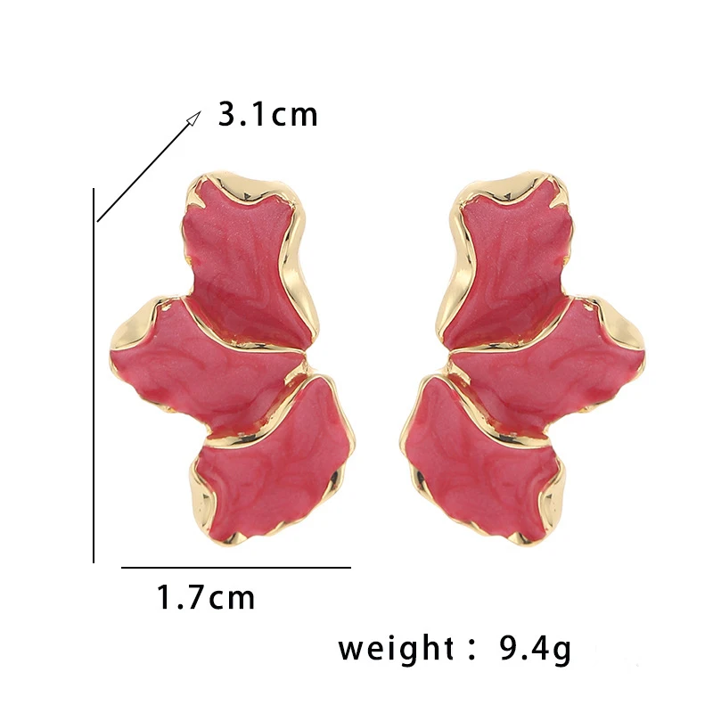 Fashion Sweet Geometric Enamel Gold Color Flower Stud Earrings Women Elegant Jewelry Fresh Blue Green White Red Pink Earrings